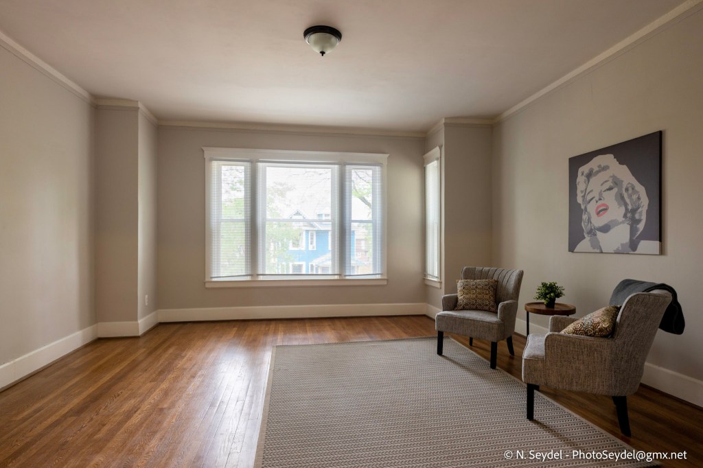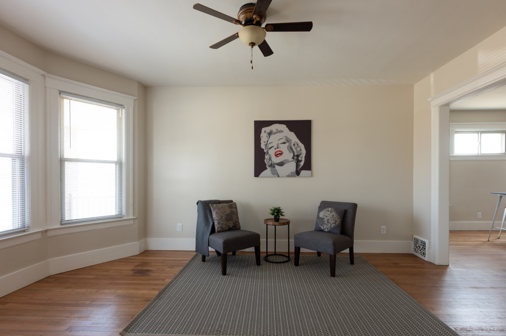 This two-bedroom, one-bathroom residence is nestled in a classic fourplex in Detroit’s vibrant North End neighborhood. Measuring approximately 950 square feet, this ground-floor unit marries historic character with modern convenience.