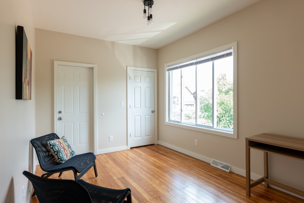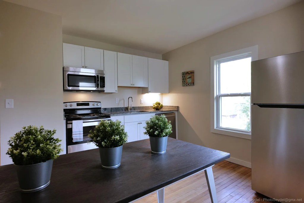 This updated 3-bedroom, 1-bath unit is located in Detroit’s North End neighborhood. It features original hardwood floors, high ceilings, and modern finishes throughout. The unit includes a fully equipped kitchen with stainless steel appliances, granite countertops, and soft-close cabinets.